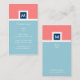 Moderne Koralle und blaue Monogramm-Visitenkarte Visitenkarte