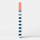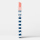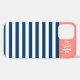 Dress up and protect your iphone with a simple, modern and stylish striped pattern design that is custom mit Monogramm with your first, mittel and last name initials in a preppy serif Schriftart. Dunkelmarineblau und weiße horizontale Streifen kontrastiert mit einem hellen korallenorange / rosa Farbblock Hintergrund.