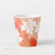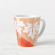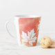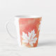 Moderne Korallenwasserfarbe und weißer Ahorn verlasse latte Tasse. Ein schönes Design, das wunderschöne Ahornfarben-Blätter in Weiß auf lebendigen Korallenwasser-Splash beinhaltet.