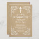 Unsere wunderschöne, moderne Aquarelleinladung, die erste heilige Kommunion mit einem Vintagen Scrollrahmen, einem weißen Kreuz und einem extravaganten, heiligen Schriftart-Set auf einem beliebten Krafthintergrund, dreht unsere Kommunion zu einem passenden Rücken für eine besondere Touch einladen. Perfekte Einladung für eine Mädchengemeinde oder eine Jungen-Gemeinschaft. Besuchen Sie unseren Shop für diese Einladung in einer großen Auswahl an modernen und trendigen Farben.