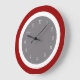 Moderne Küchenmauer mit zeitgenössischen geometrischen Kreisen in Rot, Lila und Weiß mit stylischen Zahlen auf der Uhr Gesicht in dieser Wanddekoration Uhr Design für Ihre Küche, Familienzimmer oder jedes Zimmer in Ihrem Haus Sie wollte, um etwas Charakter und Stil hinzuzufügen.8
