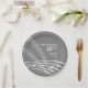 Moderne, stilvolle silbergraue 25. SILVER WEDDING JAHRESTAG Teller, einschließlich musikalischer Stöcke und 25 in LIGHT GRAY. Der Haupttext lautet "MAKING SWEET MUSIC FOR 25 YAARS". Es gibt einen CUSTOMIZABLE-TEXT, den Sie PERSONALISIEREN können, indem Sie das Jubiläumsjahr, die Namen des besonderen Paares und das laufende Jahr hinzufügen. Weitere Meilensteine und Farben sind bei BEREAN DESIGNS erhältlich.