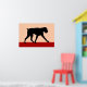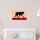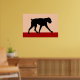 Ein minimalistisches modernes Kunstdesign einer Silhouette eines Boxerhundes in Schwarz und Rot.