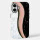 Ein elegantes iPhone 16 Gehäuse mit modernem Look in rosa Swirl, weißem und schwarzem Marmor auch für Pro oder Max Hüllen