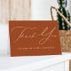 Elegante gefaltete Hochzeitsdankkarte mit "Dankeschön" in einem weißen Kalligrafieschrift auf der Vorderseite mit Ihrem Nachnamen unten auf einem Terrakotta Hintergrund dargestellt. Die Innenseite der Hochzeit Dankeschön-Karte zeigt Ihre individuelle Danksagung und Vornamen in schwarzer Schrift. Design koordiniert mit unserer Hochzeitskollektion "Moderne Elegance".