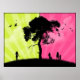 Moderne Kunst - Grün und Rosa Himmel mit Bäumen Poster