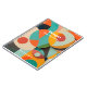 Moderne Malerei aus dem Mittelalter in verschiedenen geometrischen Formen in Rot, aquamarin, Orange, Schwarz und Grün mit fett weißem Namen oder Monogramm mit 2 zusätzlichen Textzeilen
