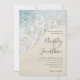 Diese moderne Hochzeitseinladung für Hochzeiten in Urlaubsort besticht durch eine stilvolle Handschrift mit Ampersand auf einem nahen Foto am Strand mit Meereswellen und Meeresfauna.