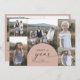 Diese moderne Lachs Multi-Foto Familie, was ein Jahr Ferienkarte ist der perfekte, einfache Urlaub Gruß. Das böhmisch-orange-rosa Design zeichnet sich durch eine einzigartige, industrielle Schrift mit minimalistisch Vintagem Stil aus. Personalisieren Sie die Vorderseite der Karte mit 6 Fotos, Ihrem Familiennamen und dem Jahr. Fügen Sie auf der Kartenrückseite 2 zusätzliche Fotos und ein optionales Jahr in Review oder Familiennachrichten ein.