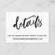 Behalt deinen Hochzeitsgästen in der Schlaufe mit all deinen Details mit diesen modernen Gastgeschenk Hochzeiten Einsteckkarten. Diese hübschen Karten spiegeln einen eleganten, lässigen Stil wider. Lässige Textüberlagerungen wurden mit einem modernen, handgeschriebenen Schriftart in Schwarz entworfen. Der Kopf der einen Seite lautet "Save the Date", die andere steht einfach "Details". Verwenden Sie die Vorlagenfelder, um diese Gehäusekarten mit Ihren persönlichen Daten anzupassen. Mit "Visitenkartentechnologie" bedruckt, wird die praktische, größere Größe leicht behalten. Verschicken Sie diese mit Ihren traditionellen Mailings und behalt ein paar, um mit denen zu teilen, die ein oder zwei extra brauchen! Der Hintergrund ist weiß, und diese bearbeitbare Farbe kann von Ihrer Hochzeitspalette auf alles geändert werden, was Sie auswählen; der gesamte Text erscheint in schwarz. // 100 // Designed by Melody Watson for Paper Muserie.