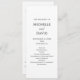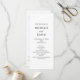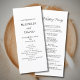 Modernes Hochzeitsfeierprogramm mit lässigem Schriftzeichen-Design. Set auf einem einfachen, weißen Hintergrund, Sie anpassen mit Ihren eigenen Informationen. Eine einfache und elegante Ergänzung zu Ihrem besonderen Tag