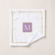 Moderne Lavendel lila und grüne tropische Blätter Muster Badehandtuch Set. Ein wunderschönes tropisches Design, das Monstera und Palmen Blätter mit goldener Kontur umfasst. Das Badetuch ist lila, das Handtuch grün und das Waschlappen zeigen Ihre Monogramm und ein tropisches Blatt.