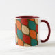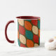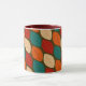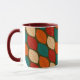 Moderne, geometrische Leaf-Gemusterte Tasse Mitte des Jahrhunderts Dieses geometrische Muster der Waldflächen-Blätter ist einfach und atemberaubend. Die schönen, natürlichen Farben sind orange, rot, grün, braun und aquamarin. Das Zuhause-Accessoire rundet das moderne Dekor und den Stil der Mitte des Jahrhunderts ab.