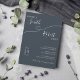 Eine Kombination aus Eleganz und zeitgenössischem Stil präsentiert unsere moderne Leaf Typografy Wedding Invitation. Mit seiner fesselnden dunkelblauen Farbe und seinem minimalistischen Design Set es den perfekten Ton für Ihren besonderen Tag. Diese Einladung ist mit einem anmutigen Herzmotiv und eleganter Typografie geschmückt und strahlt Raffinesse aus. Es wurde so konzipiert, dass es Ihre einzigartige Liebe widerspiegelt und verspricht, Ihren Gästen einen bleibenden Eindruck verlassen. Moderne Romantik mit unserer modernen leaf Typografie Hochzeitseinladung.