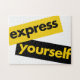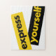 Modernes, einfaches, minimales typografisches Design eines Sprichworts "Express yourself" in Schwarz und Gelb. Lebendige, coole, urbane, trendige und lebendige grafische Kunst