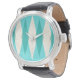 Diese moderne Leather Watch aus dem Mittelalter besticht durch einen lebendigen, türkisfarbenen Hintergrund und ein Muster aus Mod, lichtdurchlässigen aquamarinen Diamanten, die größere, Vintage Cremetamoros mit goldfarbenen Splitterklötzen im Weltraum überlagern. Diese minimalistisch inspiriert, dekonstruierte Raute ist eine vereinfachende Rückgabe der größeren als der Lebensatomärzeit, die die Dekorationslandschaft der 1950er und 1960er Jahre dominierte. Dieses kitschige Design erinnert an alles, von den Retro-Bowling-Gassen-Schildern von Palm Springs bis zu den Fernsehfächern, die Sie bei Ihrer Großmutter benutzt haben.