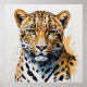 Ein minimaler Leopard mit schlanken, vereinfachten Linien und einem Hauch von goldgelbem Fell.
