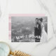 Moderne Liebe & dank Hochzeitsfotos mit weißem gebogenem Schriftzeichen vorne. Auf der Rückseite sind elegante rosafarbene Streifen. Fügen Sie einfach Ihr benutzerdefiniertes Foto und Text hinzu.