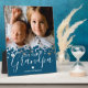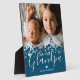 Personalisierte Großvater-Foto-Plakette mit einem wertvollen familiären Foto, einem modernen blauen Herzdesign, dem Sprichwort "Wir Liebe du Großvater" und den Kindernamen.