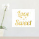 Moderne "Liebe ist süß" Zitat fett gedruckte Typografie und Herz-Gold-Folie auf weißem Druck.