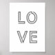 Einfaches, stilvolles "Liebe" Zitat-Wand-Kunstdruckposter mit moderner Doppelzeilentypografie in schwarz auf weißem Hintergrund. Minimalistisches, modernes, einfarbiges Design, inspiriert durch Romantik, Ermutigung, Inspiration, Motivation, Familie, Freundschaft und Freundlichkeit.