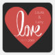 Moderne LIEBE Rote Schwarze Gastgeschenk Hochzeit Quadratischer Aufkleber