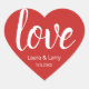 Moderne LIEBE im roten Herzen. Weiß und rot. Nutzen Sie sie für Ihre Einladungen, Favoriten oder Begrüßungstaschen. Bearbeiten Sie die Namen von Braut und Bräuche und das Datum oder Löschen. Hochzeit, Verlobung, Jahrestag. Weitere Informationen finden Sie unter "Wedding STICKERS & LABELS"