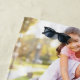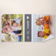 Ein modernes Strandtuch mit 2 Fotos mit dem Text "Liebe du, Oma ♥️" über dicken grauen Streifen.