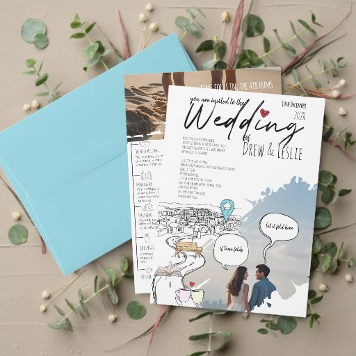 Moderne Liebe Story Timeline Illustriert Hochzeit Einladung