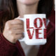 Moderne LIEBE Tasse mit Rote Rosen Typografie