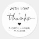 Modern bedanken Sie sich beim Aufkleber für Ihre Hochzeitsempfehlung und bedanken Sie sich bei den Dankkarten mit "Mit Liebe + Dank" in einfacher Typografie und einem stilvollen Chic-Skript, Ihren Namen und Ihren Hochzeitstag.