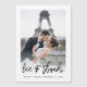 Diese Karte zeigt "Liebe & Dank" in Handschrift über einem Foto.