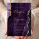 Diese elegante Hochzeitseinladung zeigt ein Hintergrundbild des lila Aquarelles, bestickt mit Imitaten vergoldeten Glitzer. Der anpassbare Text kombiniert schicke goldfarbene moderne Handschrift, Copperplate und kursiv Schriftart. Die Rückseite ist mit einem lila und goldfarbenen Agatdesign abgestimmt.