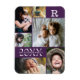 Moderner Lila Farbblock Familie 6 FotoCollage - mit personalisiertem Familiennamen, Jahr und Anfangsbuchstaben, alle in einem eleganten Rasterlayout angeordnet. Dieses moderne und elegante Design zeigt 6 eigene Bilder wunderschön. In verschiedenen Farbtönen, die zu jeder Zimmerdekoration passen. Ein tolles Urlaubsgeschenk für Großeltern, Eltern, Familie, Freunde und Angehörige. Anpassen Sie es einfach mit Ihren Fotos und Texten.