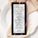 Moderne Lila Goldmarmorhochzeit Menükarte