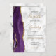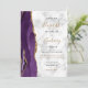 Der links Rand dieser eleganten, modernen Hochzeitseinladung zeichnet sich durch eine lila Aquarellgrenze aus, die mit Imitaten mit goldenem Glitzer bestickt wurde. Der anpassbare Text kombiniert schwarz-goldfarbene Handschrift, Copperplate und kursiv Schriftart auf grauem und weißem Marmorhintergrund. Auf der Rückseite, einfach das Beispielbild durch Ihr eigenes Foto ersetzen, und fügen Sie ein paar Zeilen zusätzliche Informationen, wie Ihre Hochzeitswebsite URL.