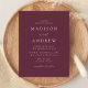 Minimalistische, moderne Hochzeitseinladung Postkarte mit Ihren Hochzeitsdetails in weißer Schrift mit Akzenten der Kalligraphie. Der lila Hintergrund kann in eine Farbe Ihrer Wahl geändert werden. Personalisieren Sie die Rückseite der schicken Hochzeitseinladung Postcard mit Ihrer Rücksendeadresse, Hochzeitswebsite, Bildern, etc. Entworfen, um mit unserer Hochzeitskollektion "Moderne Elegance" zu koordinieren.