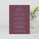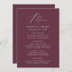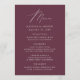 Einfaches und elegantes Hochzeitsmenü mit "Menü", das in einem modernen, weißen Skript mit einem lila Hintergrund oder Farbe Ihrer Wahl angezeigt wird. Personalisieren Sie das lila Hochzeitsmenü, indem Sie Ihren Namen, das Hochzeitsdatum und die Menüinformationen hinzufügen. Entworfen, um mit unserer Hochzeitskollektion "Moderne Elegance" zu koordinieren.