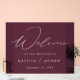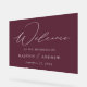 Elegantes Begrüßungsschild mit "Welcome" in einem modernen, weißen Kalligraphieskript mit lila Acrylhintergrund. Personalisieren Sie das Acryl-Hochzeitszeichen, indem Sie Ihre Namen und das Hochzeitsdatum hinzufügen. Das lila Begrüßungsschild wurde entworfen, um sich mit unserer Hochzeitskollektion "Moderne Elegance" abzustimmen und ist in anderen Farben/Stilvarianten erhältlich.