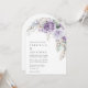 Eine moderne Hochzeitsinklusive mit einem Bouquet von Aquarellfarben-Blume in lila-weiß-Farbtönen mit Akzenten im Grünen. Personalisieren Sie alle wichtigen Details, einschließlich Brautname und Bräutigam, Hochzeitstag und Ort.