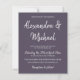 Elegante trendige Typografie-Budget erschwingliche Hochzeitseinladung in lila dunkler Pflaume und weißer Handschrift mit großen Braut- und Bräutigam-Namen Kalligraphie-Skript. +++++++++++++++++++ Sie können die Farben von Text und Hintergrund ändern, nachdem Sie die weitere Option CUSTOMIZE ausgewählt haben. ++++++++++++ Die Einladung ist für jede Saison - Frühjahr, Sommer, Herbst, Winter - Hochzeitsempfang im Haus geeignet.