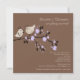 Laufen Sie Ihr Ereignis weg vom Recht mit unserer Trendy u. modernen Brautpartyeinladung an, die ein niedliches Paar Braut- u. Bräutigamvögel in der Liebe kennzeichnet, die auf einem Lavendellila Blumenniederlassungs-Set auf einem braunen Hintergrund sitzt. Fertigen Sie einfach unsere schöne Vogelpaar-Brautpartyeinladung mit Ihren Hochzeitsinformationen besonders an und Sie sind alles Set, zum zu gehen.