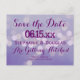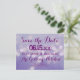 Moderne Lila Lilac Save the Date Postkarten mit einem leichten Punkteeffekt. Fügen Sie einfach die Namen der Braut und des Bräutigams und das Hochzeitsdatum hinzu, zusammen mit dem Ort und allen anderen Informationen, die Sie gewollt haben, um diese leicht zu verwendende Vorlage zu ergänzen. Fügen Sie dann Ihre Rücksendeadresse auf der Rückseite ein. Rett Geld auf der Bühne, indem man diese als Postkarten verschickt: lila, lavender, violet, buch, zirkel, dots, lila, moderne Save the Date Postkarten, trendige Save the Date Postkarten, Hochzeit ersparen das Datum, werden Save the Date getroffen, Spaß hübschen Stilvoll, lila, lila, violett, lavender, bokeh, zirkel dots