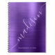 Moderne, gürlich lila Metallic-Schriftzeichen für personalisiertes Spiralnotebook. Dieses feminine Design mit einem Imitat tief indigo lila gebürstetem metallischem Hintergrund, einem handgeschriebenen Unterschriftnamen oder einer Textvorlage aus Monogramm. Der Name ist in einer riesigen Wirblen Hand geschrieben Schwanz Schriftart Stil geschmückt. Große Frauengeschenke für Mädchen und Frauen für Schule, Zuhause-Büro, Business, Geburtstag, Hochzeit, Brautparty, süße 16 Geburtstagsparty, oder alle, die Lieben hübsch mädchenhaften Stil.