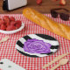Moderne Lila Rose Schwarz-weiß gestreifte Hochzeit Pappteller