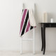 Die moderne Sherpa-Decke für Mädchenschlafzimmer weist diagonale Streifen in lila, schwarz und weiß auf.