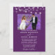 Moderne elegante Minimalistische Lila und weiße Hochzeitseinladung. String Lights. Ein paar Fotos.