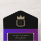 Mit dieser atemberaubenden lila, goldenen und schwarzen Juwelenton-Einladung ein kühnen Statement abgeben. Mit einem eleganten Monogramm-Design mit eleganten Goldakzenten bietet diese Einladung einen eleganten und modernen Stil für Ihren besonderen Tag. Mit einem komfortablen All-in-One-Design, beinhaltet es Ihre Hochzeitsdetails, eine passende UAWG und einen Platz für Ihr Lieblings-Foto auf der Rückseite. Einfach falten, Siegel und versenden - ideal für Paare, die eine luxuriöse und dennoch bequeme Einladungsmöglichkeit suchen. Passen Sie den Text, die Farben und den QR-Code an, um Ihr Hochzeitstil Anzug.