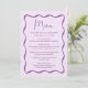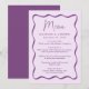 Fügen Sie Ihrer Verlobungsfeier, dem Probe-Dinner oder dem Hochzeitsempfang eine Vintage Touch mit diesem modernen Lila Wavy Frame Hochzeitsmenü hinzu. Das Design zeigt die Namen der Paare, das Hochzeitdatum und die Menüoptionen in fett lila Schrift, umgeben von einem dunklen lila Rahmen mit Rahmen und einem lila Hintergrund. Das Retro-Hochzeitsmenü koordiniert mit unserer Hochzeitskollektion Moderner Rahmen.