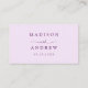 Fügen Sie Ihrem Hochzeitsempfang oder einer besonderen Veranstaltung eine stilvolle Touch mit diesen modernen Wavy Frame-Hochzeitszimmern hinzu! Das Retro-Design zeigt "Table" in einem handgeschriebenen lila Skript mit Platz für den Namen und die Tischnummer Ihres Gastes an. Ein dunkel lila, gewellter Rahmen umgibt das Design kontrastierend mit einem hellen lila Hintergrund. Auf der Rückseite der Platzkarte finden Sie Ihre Namen und Ihr Hochzeitstag in fett lila Schrift.